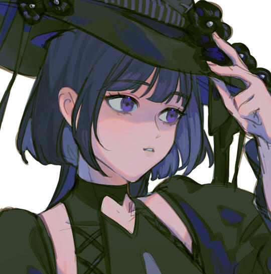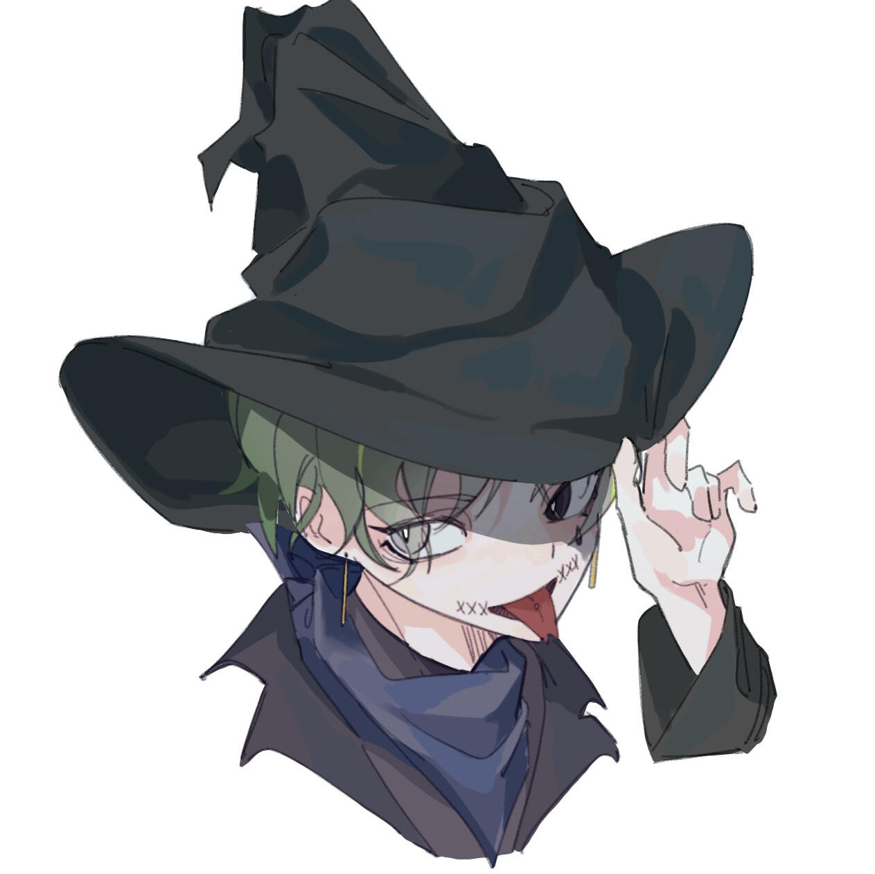 下面散髮有挑染,散髮的部分有時會綁辮子。穿著女巫服時一定會戴帽子