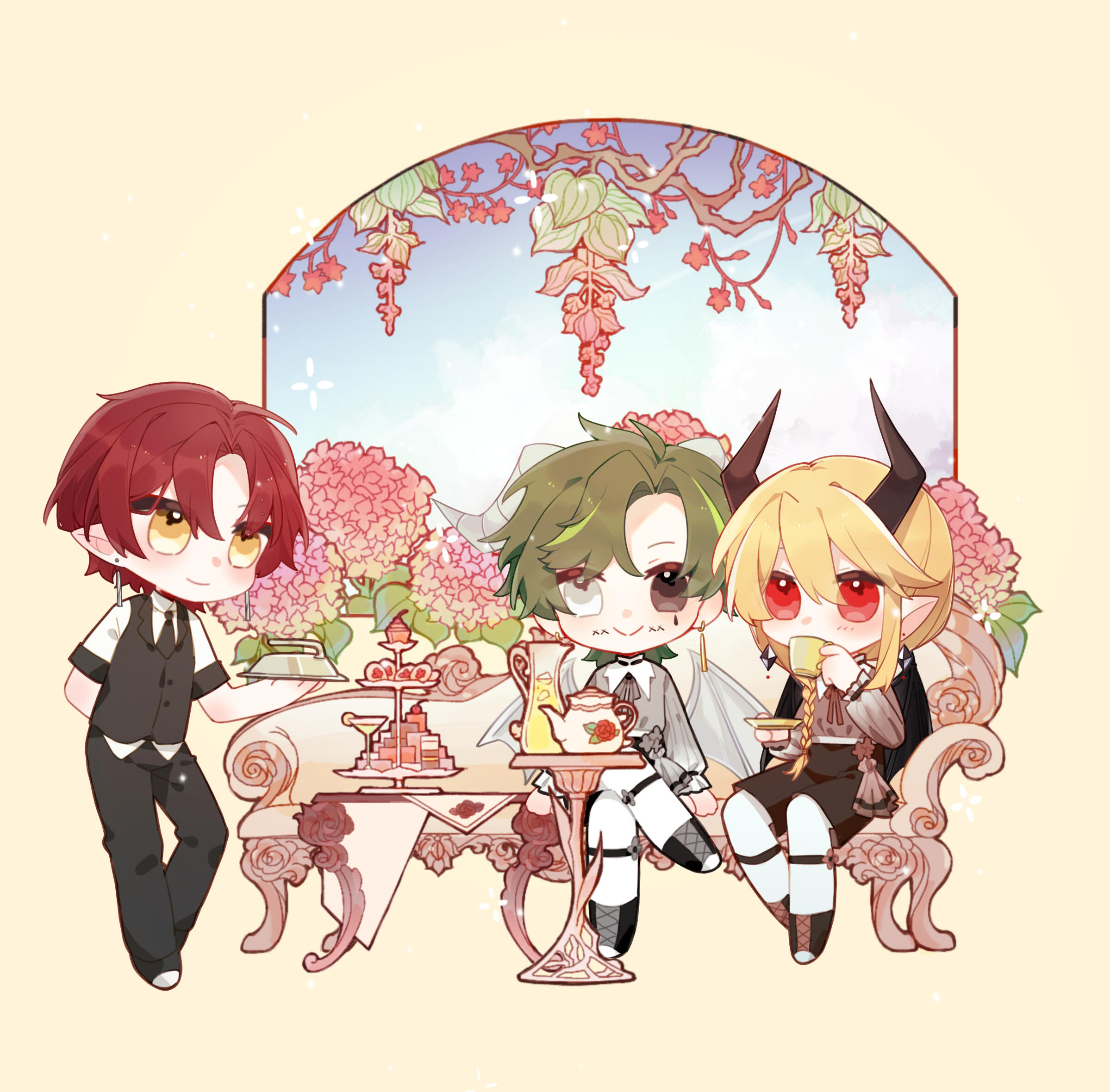 他緩緩推開了大門,但隨之而來的濃厚酒氣與昏暗未開任何一盞大燈的環境惹的他眉頭緊皺。顧不上糕點與鮮花是否會被大動作弄糟了。他大步的走到了實驗室的盡頭,無數注滿液體的柱狀艙體與魔術道具自他身旁掠過,直到止步看見對方的那刻他才鬆了一口氣。「嗯……小水母……?你怎麼跑到這來了……」